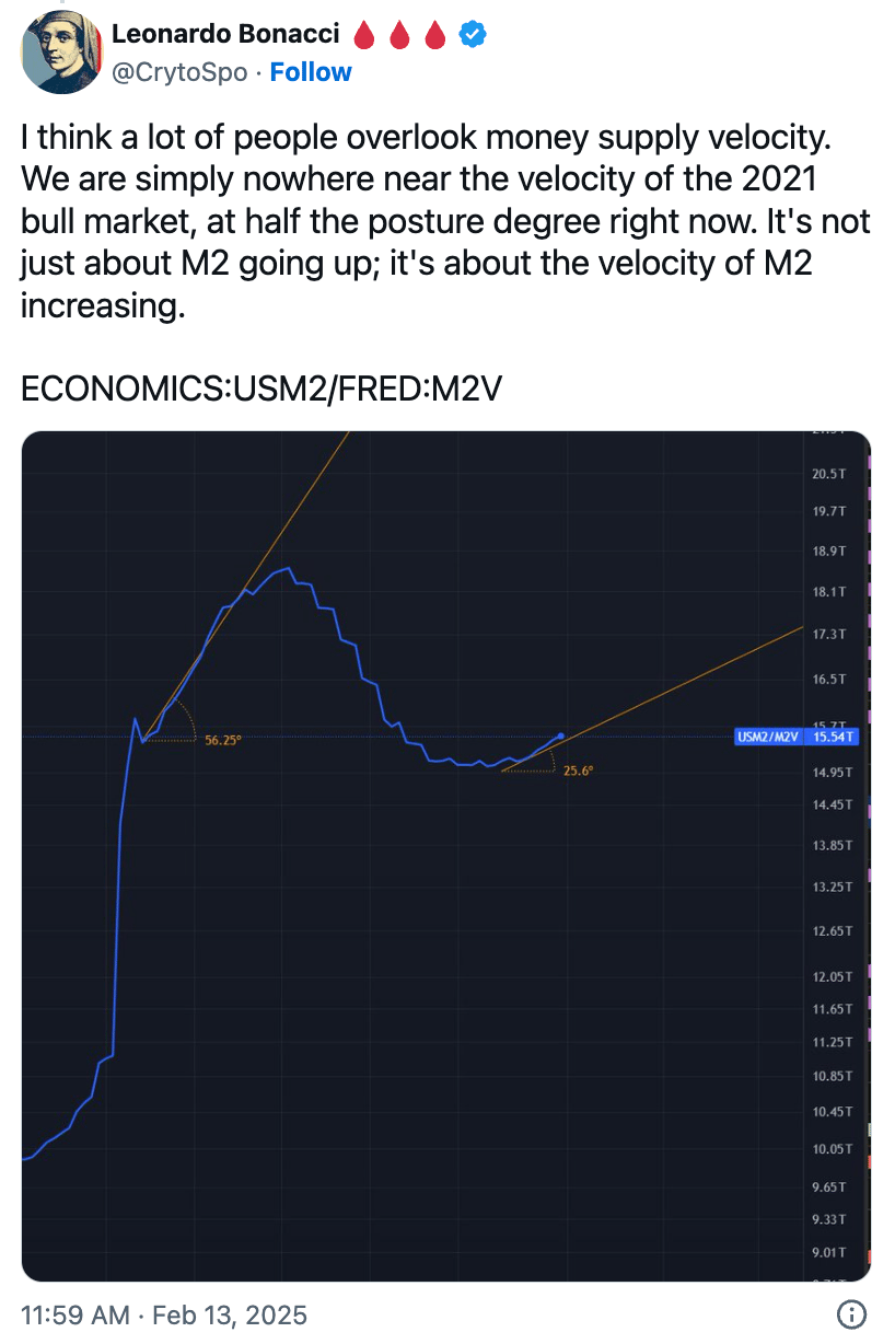 It's not just about M2 growth but also its velocity. Currently, money velocity is at half the levels seen during the 2021 bull run which indicates we’re in a less speculative growth phase. Blockchain adoption and activity tell a different story of perhaps more active users focusing on utility rather than mere speculation.